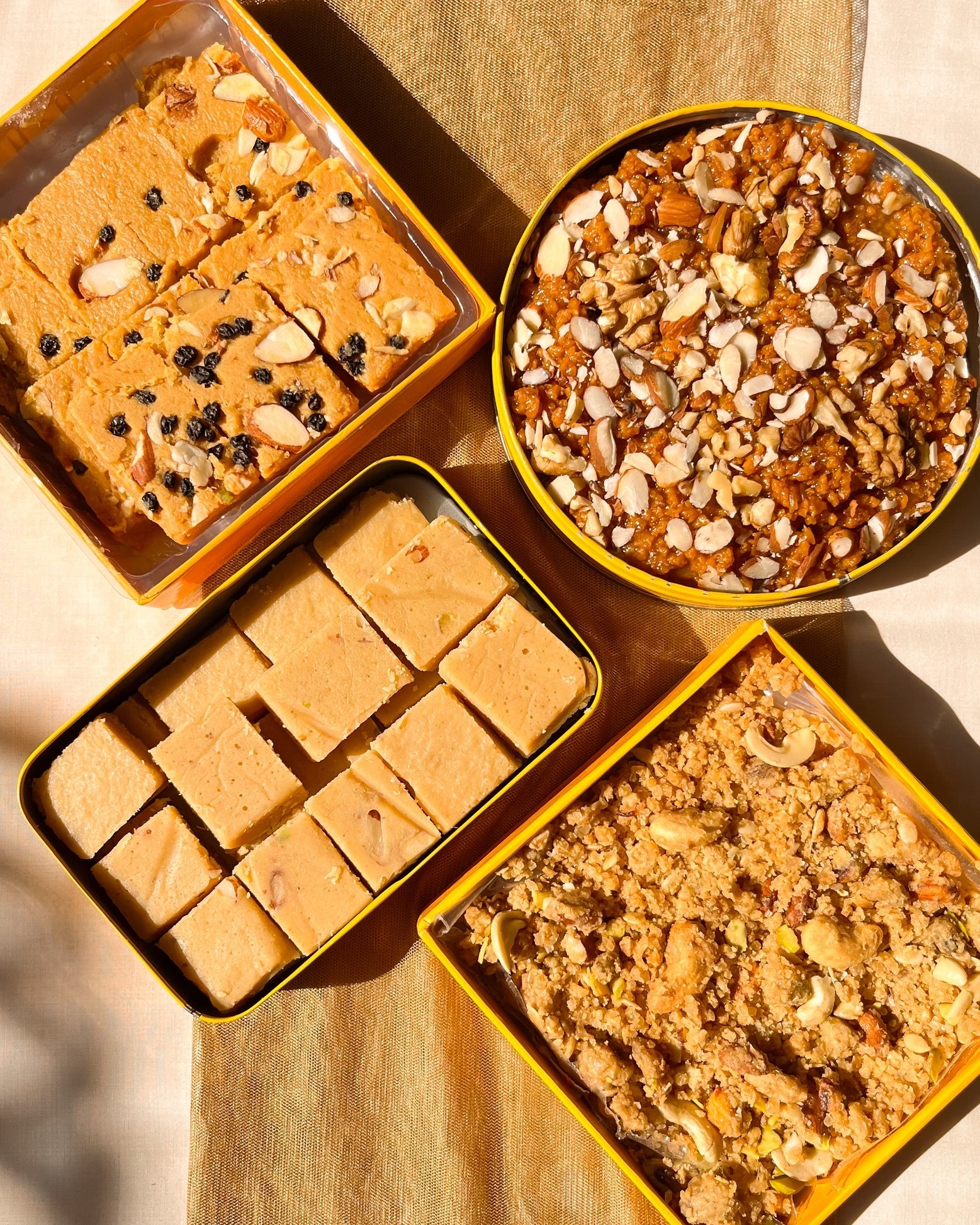 Six of our most loved heritage mithais in 100g each, all made in Desi Ghee. Inside, you’ll find: